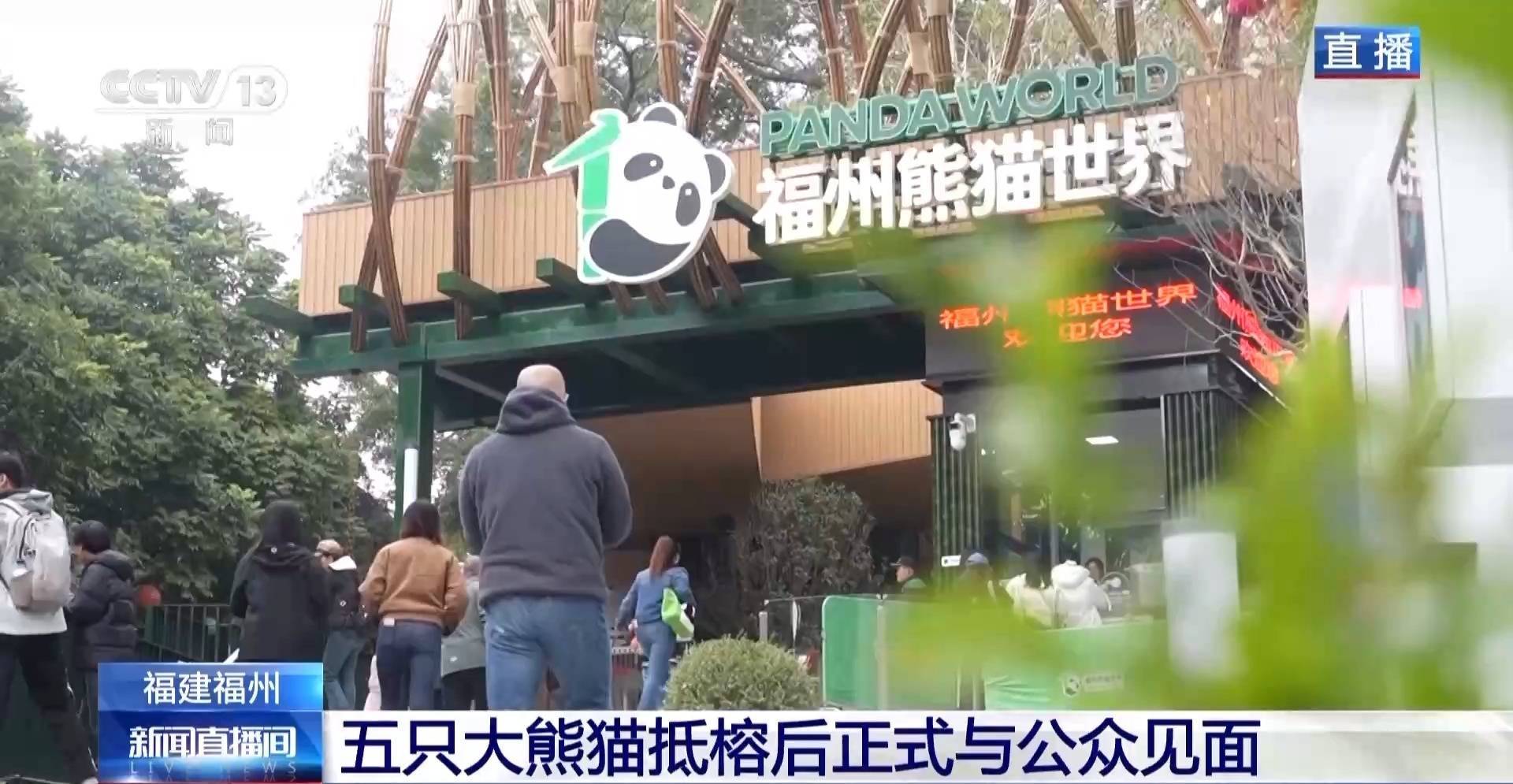 根据国家有关部门关于开展大熊猫科普交流的工作安排,成都大熊猫繁育研究基地与福州熊猫世界合作开展大熊猫科普交流活动。五只大熊猫“晶亮”“艾伦”“荣耀”“启程”“启航”于12月底顺利抵达福建福州熊猫世界,经过短暂适应期后,近日(17日)正式与公众见面。五只大熊猫都长啥样?它们的新家长什么样?