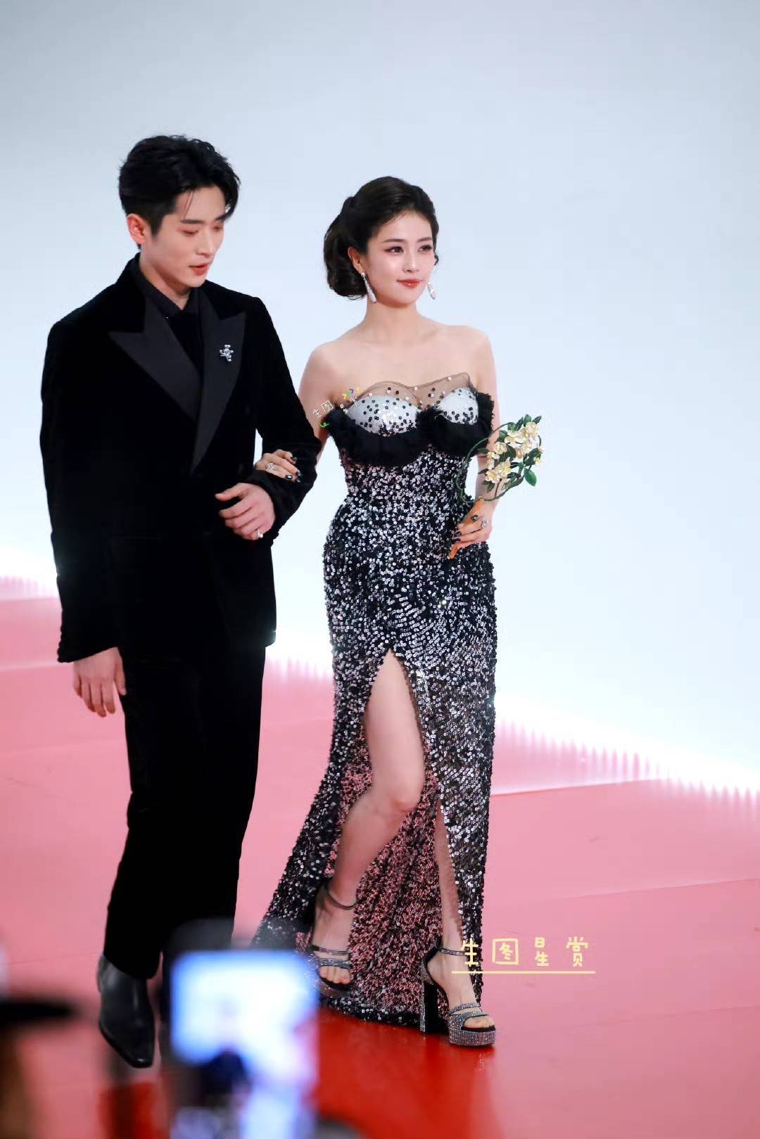 当天,赵露思选择了一套粉色亮片吊带长裙,修身的设计勾勒出身材线条,低胸的设计又增加了几分性感。